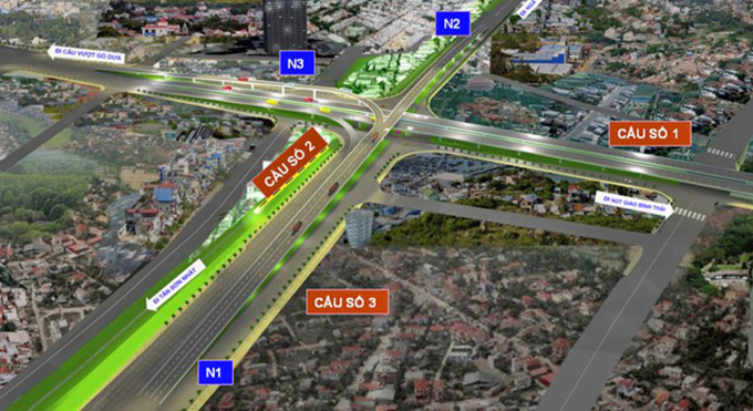 Cầu vượt Số 2 thiết kết nhánh rẽ từ đường Vành đai 2 (hướng từ sân bay Tân Sơn Nhất về quốc lộ 1), rộng 9m cho 2 làn xe. Cầu Số 3 rộng 16m với 4 làn xe theo đường Phạm Văn Đồng băng qua nút giao, sau đó chia ra hai nhánh để kết nối với các đường xung quanh.