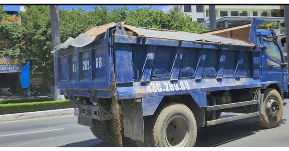 Thay vì hình ảnh của một công trình xây dựng quy mô, tại đây, PV ghi nhận hoạt động đổ thải trái phép diễn ra nhộn nhịp. Nhiều xe tải chở xà bần, giá hạ từ các khu vực khác liên tục tiến vào công trình để đổ thải. Đáng chú ý, các tài xế trước khi được phép vào đều "trao đổi nhanh" với bảo vệ công trình để được cho qua. Những hành vi này được tổ chức bài bản, với sự tham gia của công nhân san gạt phế thải ngay tại chỗ, biến khu vực thành một "bãi chứa thải chuyên nghiệp".