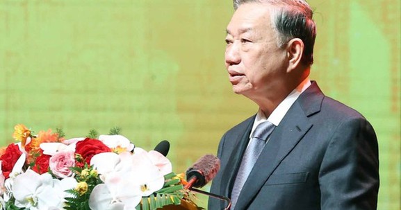 Tổng Bí thư Tô Lâm phát biểu tại buổi gặp mặt. (Ảnh: Thống Nhất/TTXVN)